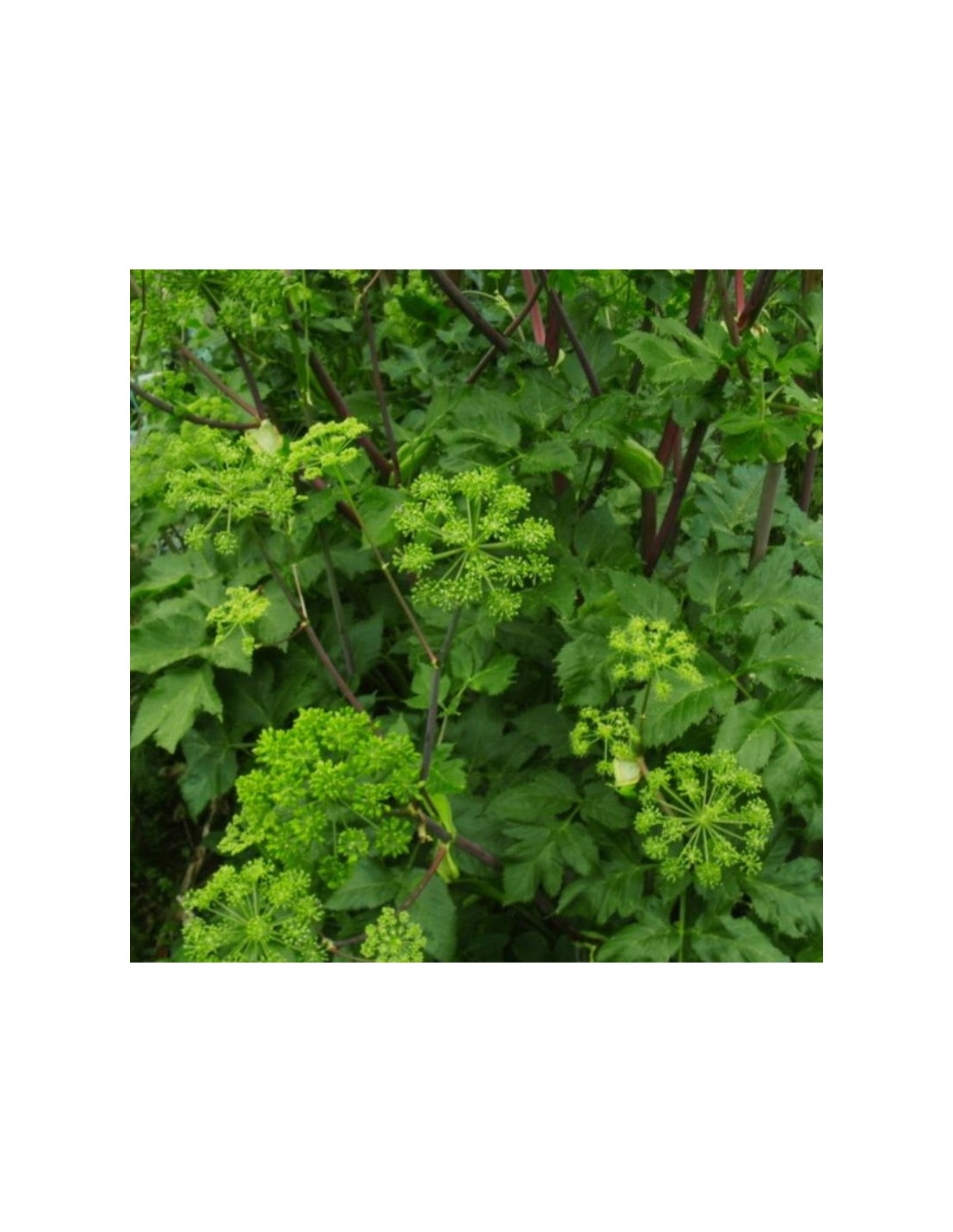 Umbelliferae. Herbe des anges, l'angélique est une plante extrêmement robuste, haute de 2 à 3 m, très florifère et très visitée par les insectes. Originaire des pays du Nord, on ne la trouve pas à l'état sauvage en France. Elle aime avoir la tête au soleil et les pieds aux frais (terrain humide, frais et riche) L'angélique est une incontournable, tant par ses multiples vertus sur la sphère digestive que pour son arôme suave et musqué, très recherché en confiserie (usage des tiges et des graines). Une belle et bonne comme on les aime.