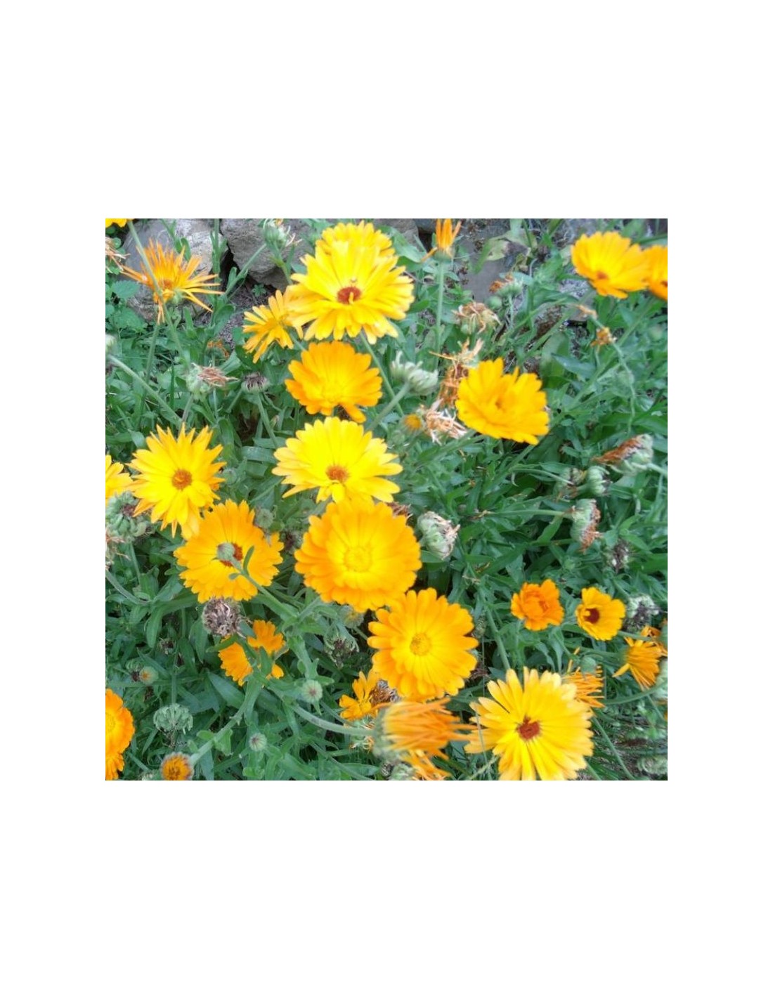 Asteraceae. On ne présente plus le Calendula, tant il est célèbre pour sa rusticité, sa facilité de culture, ses couleurs vives et ses qualités notoires en application externe en soin de la peau (crevasses, écorchures, érythèmes, piqûres d'insectes, gerçures, etc.). Une indispensable !